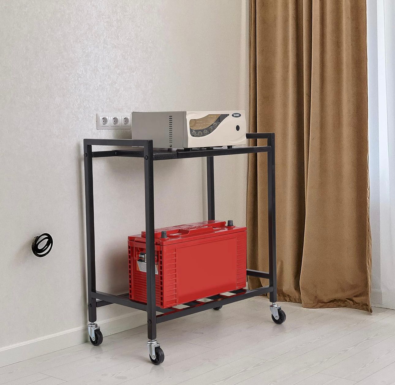 Domestic use inverter trolley for single battery or inverter black powder coated with wheel for comfortable shifting