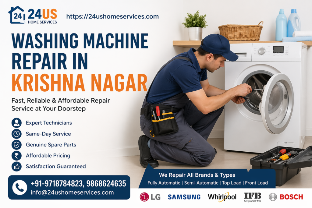 Washing Machine Repair in Krishna Nagar is now easier and more convenient with professional support from 24ushomeservices. If your washing machine is not working properly, making unusual noises, leaking water, or not spinning, it’s time to get expert help. A faulty washing machine can disrupt your daily routine, especially in busy households. That’s why having a trusted repair service in your locality is essential.